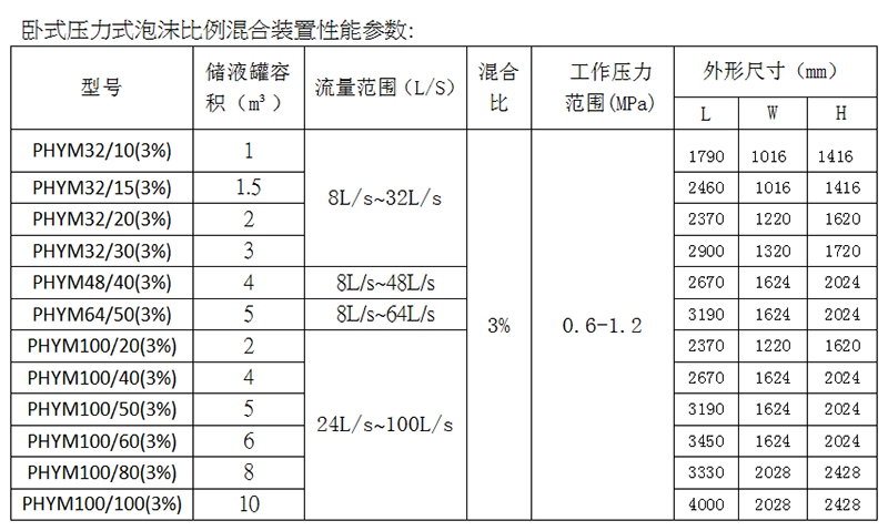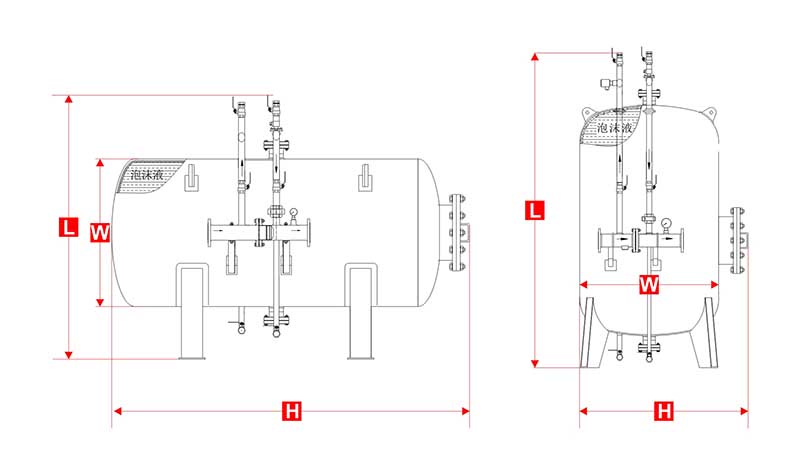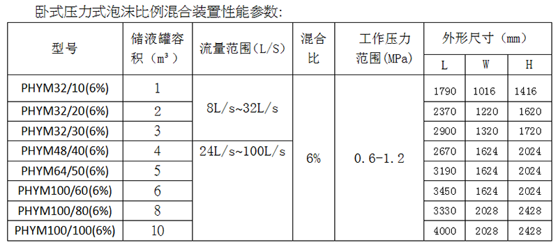 壓力式比例混合裝置是一種將消防水與泡沫滅火劑按一定比例混合的裝置,主要有罐體、膠囊、比例混合器、進水管路、出液管路、排水閥、排污閥、安全閥、壓力表等組成。每個管路均安裝有閥門、膠囊裝在罐體內,其內腔和罐腔是各自獨立的,它是用來儲存泡沫滅火劑,并通過壓力式比例混合器的作用,將消防供水置換裝置內儲存的泡沫滅火劑,并與供水按一定的比例混合形成泡沫混合液的裝置。